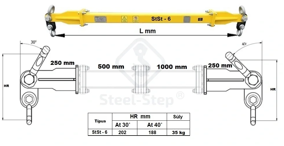 Az emelőgerendák praktikus és biztonságos megoldást jelentenek hosszabb tárgyak emelésére. A gerendára vonatkozó minőség: EN 13155 Gépek Direktiv 2006/42/ WE követelményei. Termékjelölés: gyártói jelölés, CE jelölés, teherbírás, gyári szám, gyártási év. Azoknak a terheknek az emelésére alkalmas, melyek tömegközéppontja a felfüggesztési ponthoz képest középen található. Asszimetria csak olyan mértékben megengedett, hogy a gerenda emeléskor a vízszintessel legfeljebb 6o-os szöget zárjon be. Eltérő méretek esetén kérem érdeklődjön. Amennyiben a megfelelő termék kiválasztásával, műszaki alkalmasságával kapcsolatban kérdése van, forduljon szakembereinkhez! Telefon: 06 (52) 316-319
