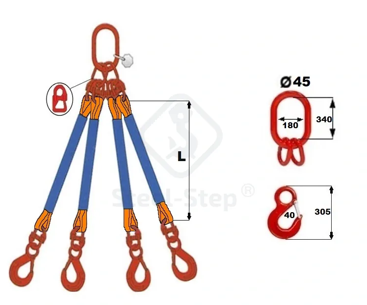 Portanta dispozitivelor din chingi circulara de poliester - Polyester round sling - 4 legs