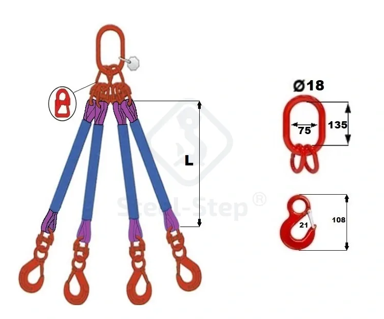 Portanta dispozitivelor din chingi circulara de poliester - Polyester round sling - 4 legs
