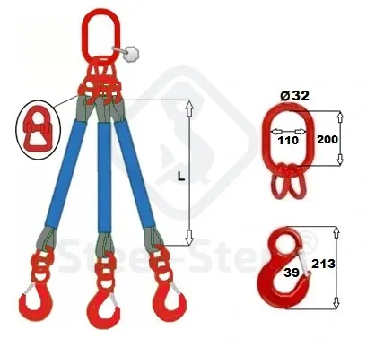Portanta dispozitivelor din chingi circulara de poliester - Polyester round sling - 3 legs