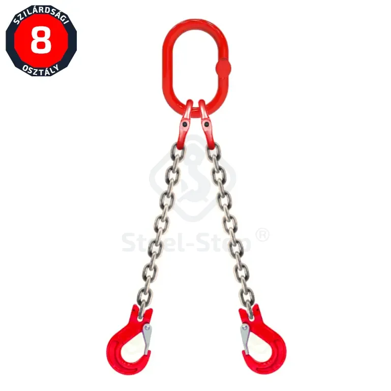 Ezeket a függesztékeket ugyanazokra a feladatokra használjuk, mint a sodronykötélből, vagy a poliészterszálas kötélből készült függesztékeket. -40 és +200 celsius fok között használható anélkül, hogy a teherbírásából veszítene. További előnyük, hogy a függesztékek elemei nehézség nélkül cserélhetők. A kész függesztékeket egyedi sorszámmal és minőségi tanusitvánnyal látjuk el. Teherláncra vonatkozó előírások: EN 818-2, Szerelvényekre vonatkozó előírások: EN 1677, Biztonsági tényező: 4:1, Átmérő tűrés: +/- 0,24 mm. A teherlánc felületkezelése: 6 mm-től 16 mm-ig elektro-galvanizált (horganyzott), 20 mm-től 32 mm-ig festett fekete. Amennyiben a megfelelő termék kiválasztásával, műszaki alkalmasságával kapcsolatban kérdése van, forduljon szakembereinkhez! Telefon: 06 (52) 316-319