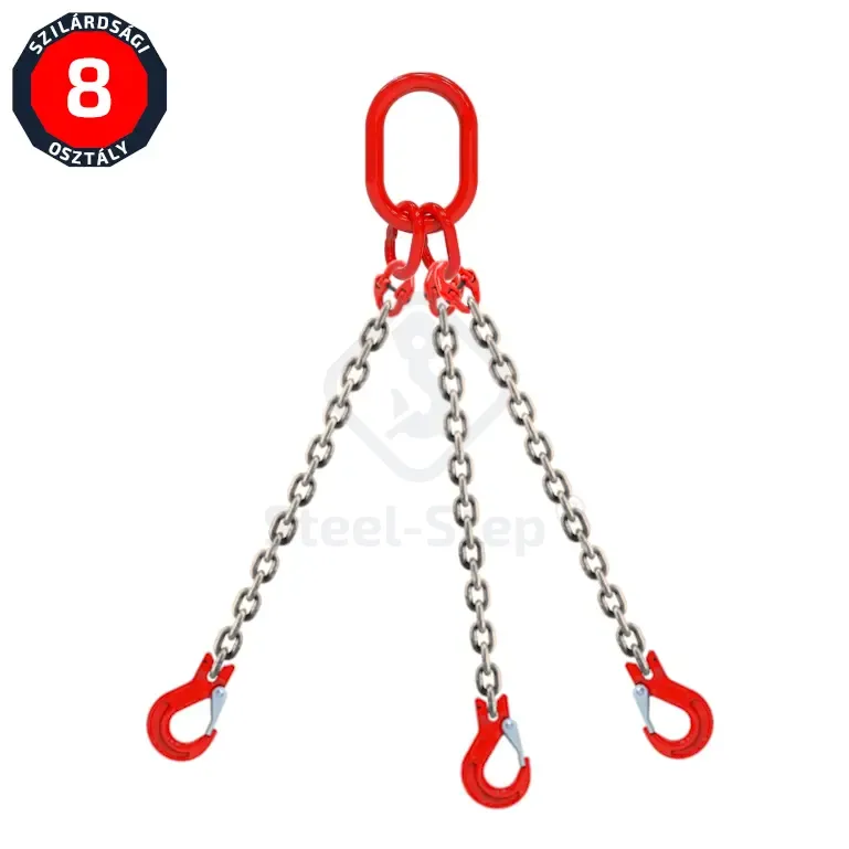 Ezeket a függesztékeket ugyanazokra a feladatokra használjuk, mint a sodronykötélből, vagy a poliészterszálas kötélből készült függesztékeket. -40 és +200 celsius fok között használható anélkül, hogy a teherbírásából veszítene. További előnyük, hogy a függesztékek elemei nehézség nélkül cserélhetők. A kész függesztékeket egyedi sorszámmal és minőségi tanusitvánnyal látjuk el. Teherláncra vonatkozó előírások: EN 818-2, Szerelvényekre vonatkozó előírások: EN 1677, Biztonsági tényező: 4:1, Átmérő tűrés: +/- 0,24 mm. A teherlánc felületkezelése: 6 mm-től 16 mm-ig elektro-galvanizált (horganyzott), 20 mm-től 32 mm-ig festett fekete. Amennyiben a megfelelő termék kiválasztásával, műszaki alkalmasságával kapcsolatban kérdése van, forduljon szakembereinkhez! Telefon: 06 (52) 316-319