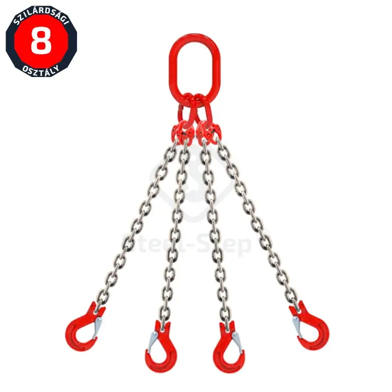 Ezeket a függesztékeket ugyanazokra a feladatokra használjuk, mint a sodronykötélből, vagy a poliészterszálas kötélből készült függesztékeket. -40 és +200 celsius fok között használható anélkül, hogy a teherbírásából veszítene. További előnyük, hogy a függesztékek elemei nehézség nélkül cserélhetők. A kész függesztékeket egyedi sorszámmal és minőségi tanusitvánnyal látjuk el. Teherláncra vonatkozó előírások: EN 818-2, Szerelvényekre vonatkozó előírások: EN 1677, Biztonsági tényező: 4:1, Átmérő tűrés: +/- 0,24 mm. A teherlánc felületkezelése: 6 mm-től 16 mm-ig elektro-galvanizált (horganyzott), 20 mm-től 32 mm-ig festett fekete. Amennyiben a megfelelő termék kiválasztásával, műszaki alkalmasságával kapcsolatban kérdése van, forduljon szakembereinkhez! Telefon: 06 (52) 316-319