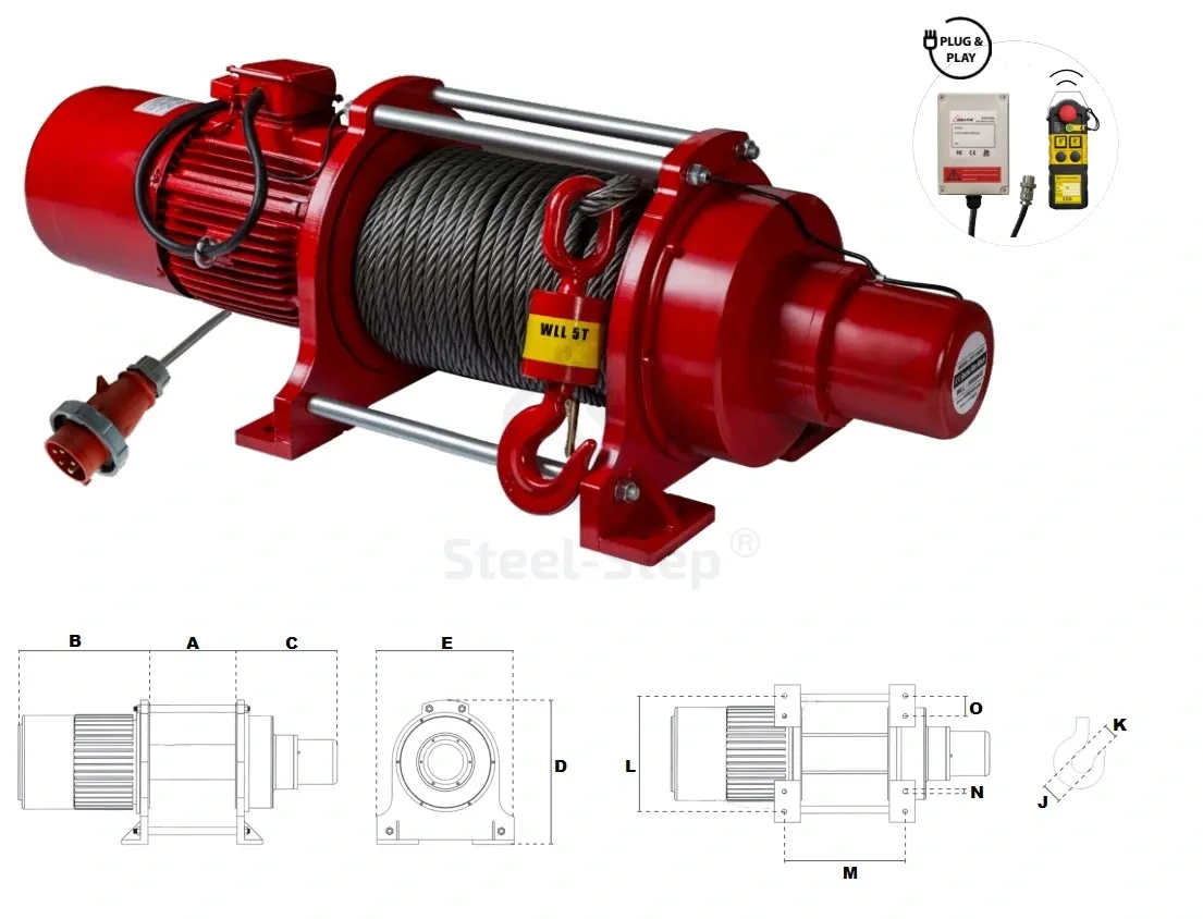 Főkategória Elektromos drotköteles csörlő (DPT) 0,5 to - 43 m kötéllel - (400V)