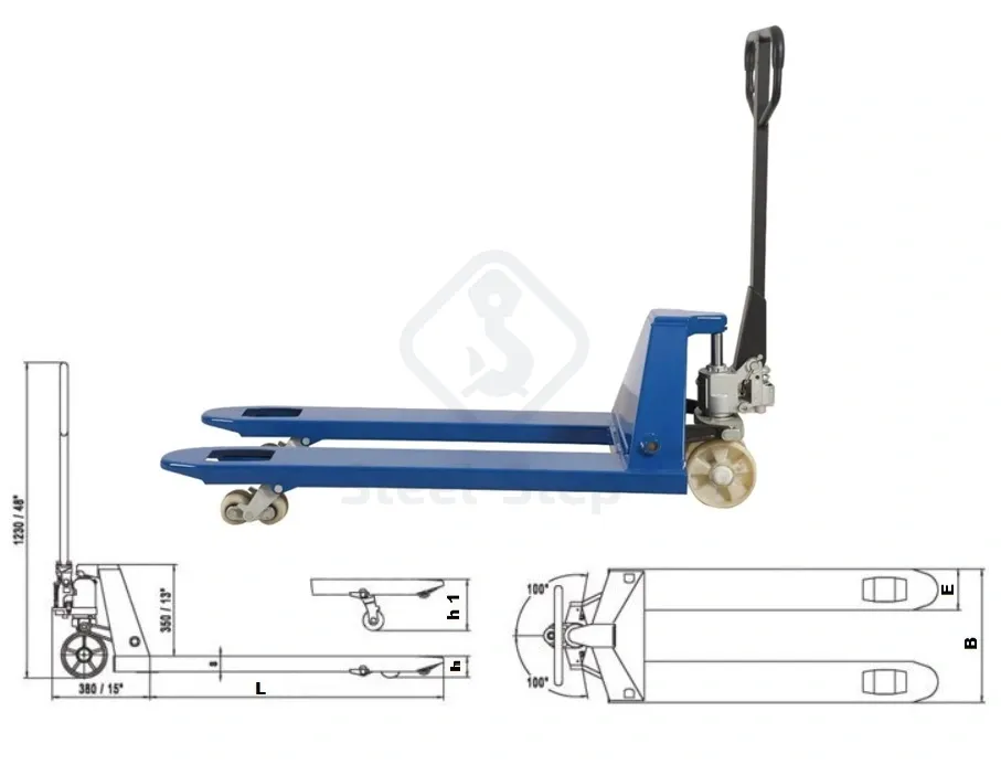 Felhasználás: szállítás, anyagmozgatás járólapon. A kormányzott kerekek bevonata: nylon vagy poliuretán. A kerekek elfordulási szöge: 230o. A kitámasztókerekek súrlódáscsökkentő anyagból készülnek, élettartamuk hosszú, karbantartást nem igényelnek. A vezérlőszelep karja három állású: süllyesztés / semleges / emelés. A szerkezet kialakítása biztosítja a szűk helyen történő mozgatást és a teher alá történő könnyű betolást (lekerekítések). Amennyiben a megfelelő termék kiválasztásával, műszaki alkalmasságával kapcsolatban kérdése van, forduljon szakembereinkhez! Telefon: 06 (52) 316-319