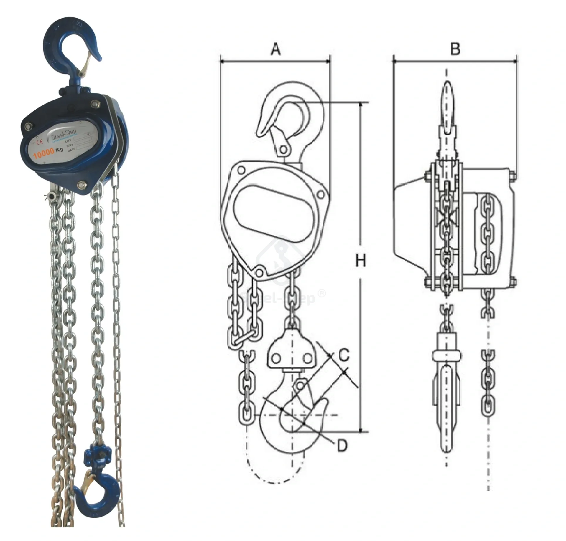 Megfelel a 2006/42/EK gépekre vonatkozó irányelvnek. Minőségi tanúsítvánnyal, CE megfelelőségi nyilatkozattal és kezelési utasítással szállítjuk. - Felhasználás: hordozható emelőeszköz, kiválóan alkalmazható időszakos emelési, karbantartási munkák elvégzéséhez. Kültéri és beltéri használatra egyaránt alkalmas. Minden emelő dinamikus terhelésálló teszten van tesztelve a megengedett teherbírás 1,5-szeresével, mielőtt elhagyja a gyárat. Kompakt, könnyű szerkezet. A lánckerék tűcsapágyakkal és hajtótengellyel van felszerelve, amelyet tűcsapágy és csúszócsapágy támaszt meg. A sima és hatékony működés érdekében biztonságos, jól fedett automatikus terhelésreakciós fék, 2 fékpofával és 4 fékrugóval felszerelt (kettős biztonság az EN 13157 követelményeinek megfelelőlen). A két végén lévő forgó horgok megkönnyítik a sorban történő elhelyezést, melyeket úgy terveztek, hogy túlterhelés esetén kinyíljanak, ahelyett, hogy eltörnének. Nagy teherbírású acél, biztonsági reteszekkel szerelt horgok. A horog oldalán deformáció-ellenőrző pontok vannak kovácsolva a túlterhelés észlelése érdekében. Amennyiben a megfelelő termék kiválasztásával, műszaki alkalmasságával kapcsolatban kérdése van, forduljon szakembereinkhez!  Telefon: 06 (52) 316-319