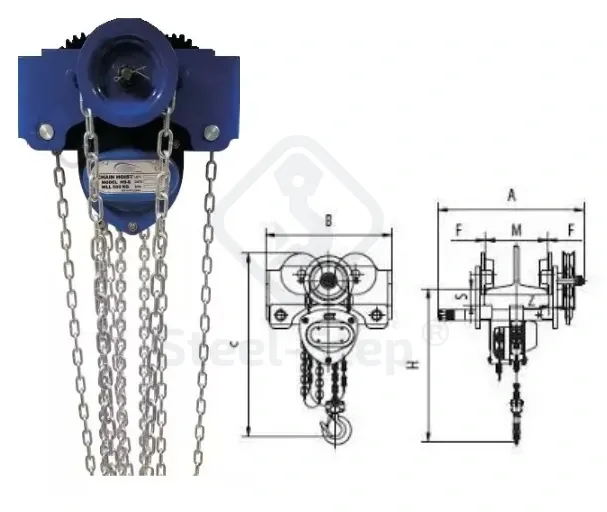 Főkategória Kézi láncos emelő futómacskával egybeépítve 0,5 to / 3 m (50 - 152 mm)