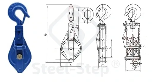 Főkategória Kötélvezető csiga 2to, kötél átm:16mm (biztosító csapszeggel)