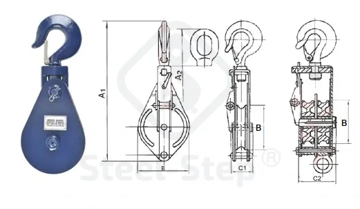 Kötélvezető csiga 4to, kötél átm:16-18mm (menetes csapszeggel)