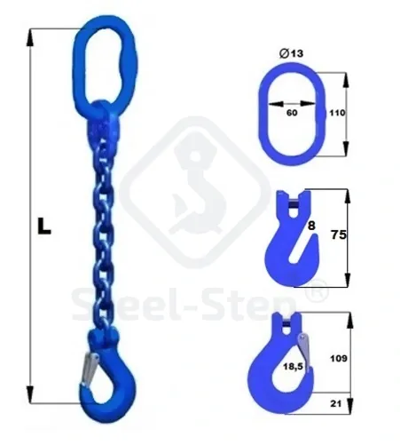 G100 Dispozitiv de ridicare din lanț D tip 1 braț - G100 Chain sling, D-type single-leg