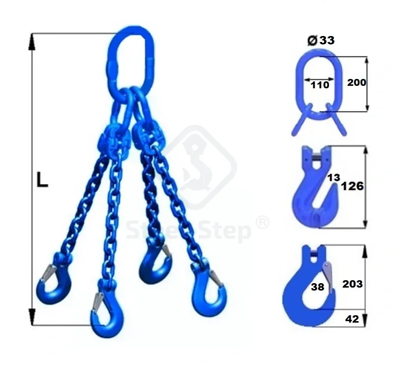 G100 Dispozitiv de ridicare din lanț H tip 4 braț -  G100 Chain sling, H-type 4-legs