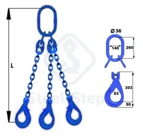 Főkategória Láncos függeszték G100 KL16 3ág 3m(önzáró villás horoggal)(rövidítő nélkül)