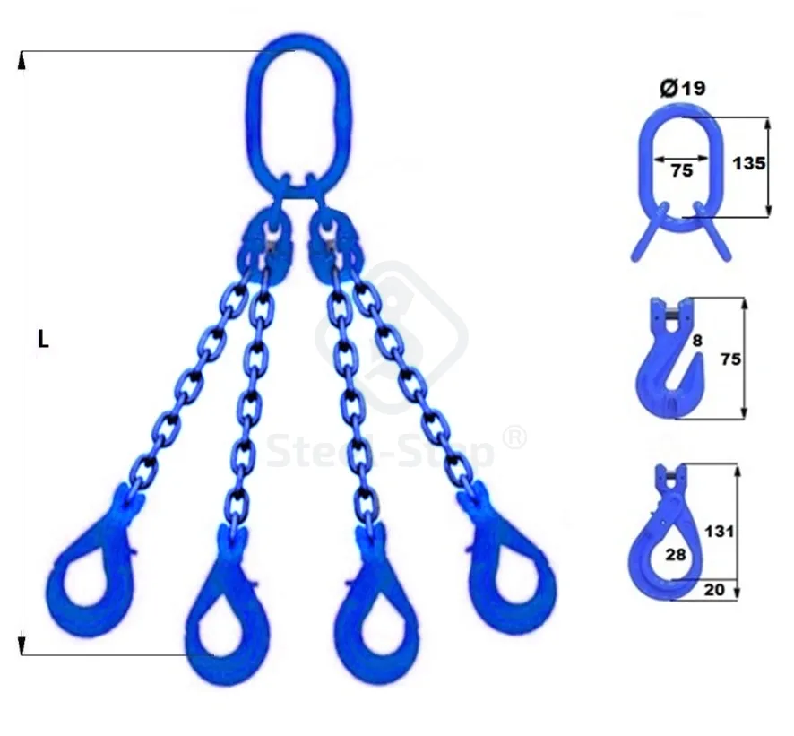 Főkategória Láncos függeszték G100 KL6 4ág 4m(önzáró villás horoggal)(rövidítővel)
