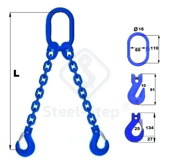 G100 Dispozitiv de ridicare din lanț G tip 2 braț  -  G100 Chain sling, G-type 2-legs