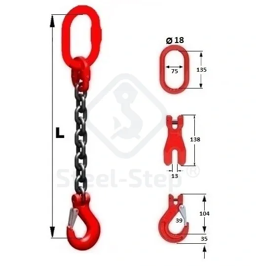 Dispozitiv de ridicare din lanț D tip 1 braț - G80 Chain sling, D-type single-leg