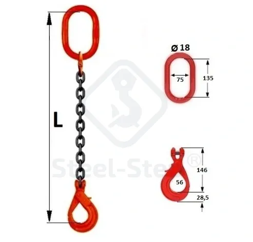Dispozitiv de ridicare din lanț D tip 1 braț - G80 Chain sling, D-type single-leg