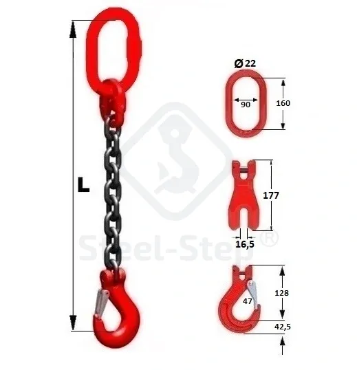 Dispozitiv de ridicare din lanț D tip 1 braț - G80 Chain sling, D-type single-leg