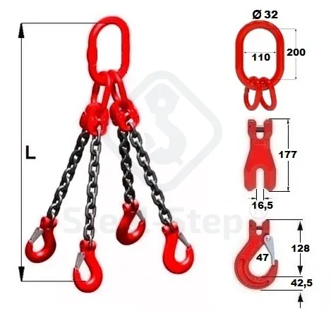 Dispozitiv de ridicare cu lanț tip H 4 ramuri - G80 Chain sling, H-type 4-legs