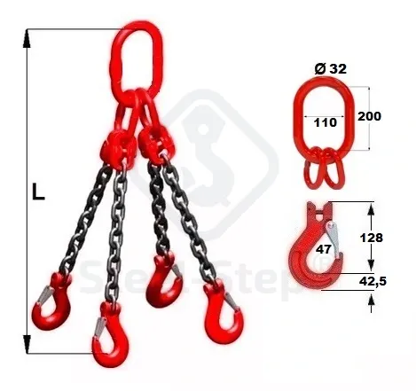 Dispozitiv de ridicare cu lanț tip H 4 ramuri - G80 Chain sling, H-type 4-legs