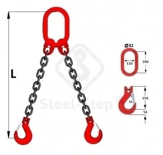 Dispozitiv de ridicare cu lanț tip G 2-ramuri - G80 Chain sling, G-type 2-legs