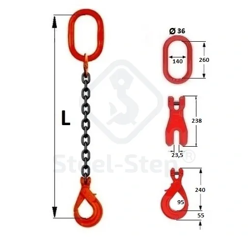 Dispozitiv de ridicare din lanț D tip 1 braț - G80 Chain sling, D-type single-leg
