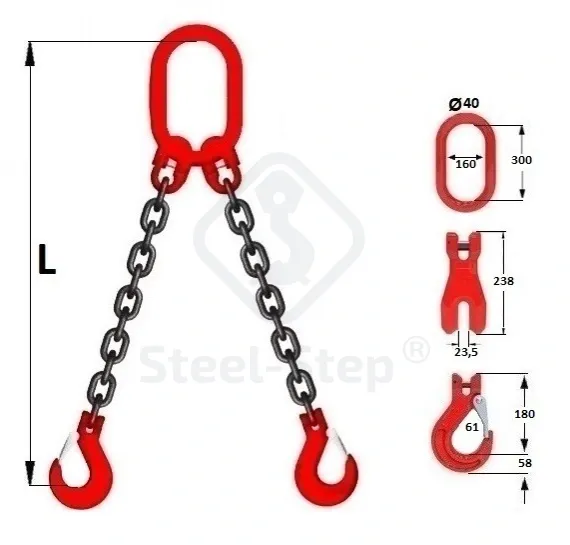 Dispozitiv de ridicare cu lanț tip G 2-ramuri - G80 Chain sling, G-type 2-legs
