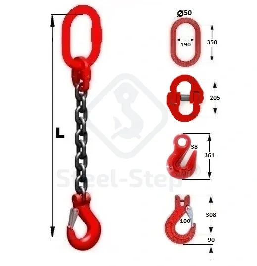 Dispozitiv de ridicare din lanț D tip 1 braț - G80 Chain sling, D-type single-leg