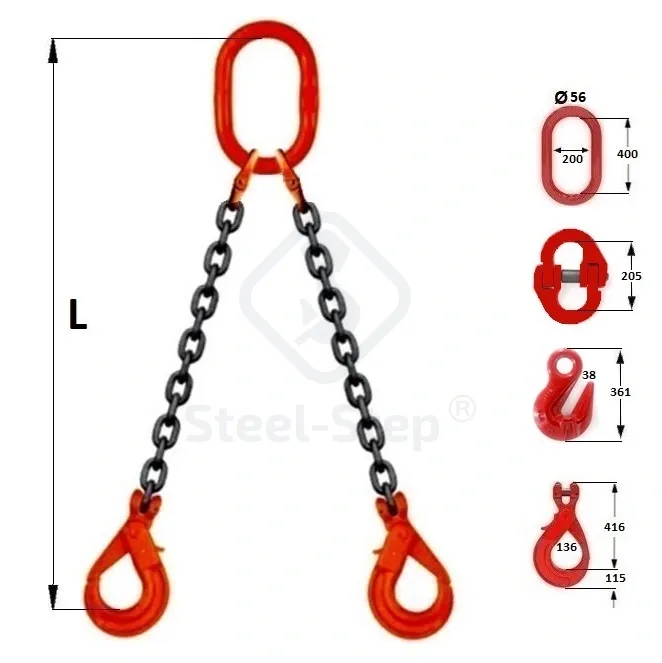 Főkategória Láncos függeszték KL32 2ág 3,5m(önzáró villás horoggal)(rövidítővel)