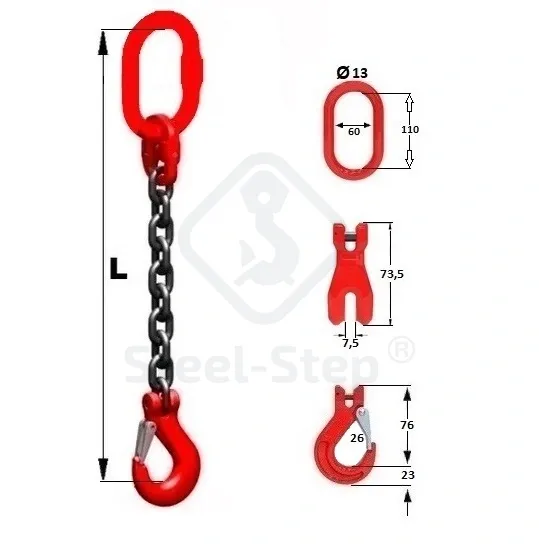 Dispozitiv de ridicare din lanț D tip 1 braț - G80 Chain sling, D-type single-leg