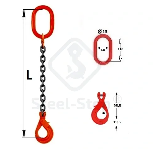 Dispozitiv de ridicare din lanț D tip 1 braț - G80 Chain sling, D-type single-leg