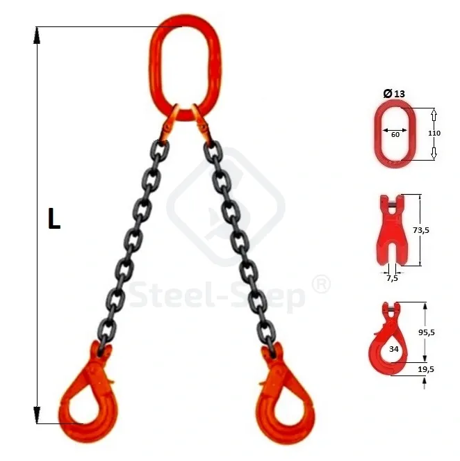 Dispozitiv de ridicare cu lanț tip G 2-ramuri - G80 Chain sling, G-type 2-legs