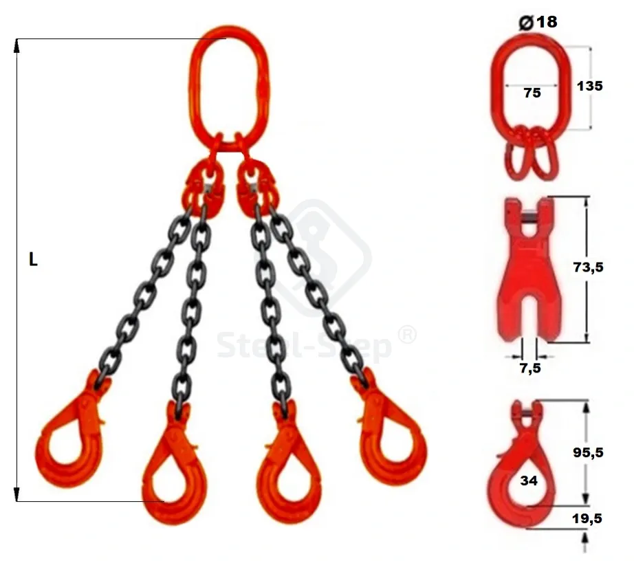 Főkategória Láncos függeszték KL6 4ág 1m(önzáró villás horoggal)(rövidítővel)