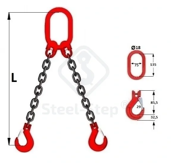 Dispozitiv de ridicare cu lanț tip G 2-ramuri - G80 Chain sling, G-type 2-legs