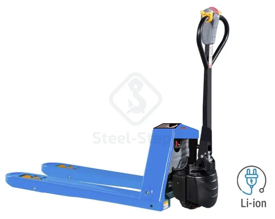 Felhasználás: szállítás, anyagmozgatás, raktározás területén. A kormányzott kerekek bevonata: alu gumival vagy poliuretán. A kerekek elfordulási szöge: min. 1353 mm - max. 1426 mm. Emelési magasság: 200 mm. A karbantartást nem igénylő, cserélhető Li-ion akkumulátorral szerelt, elektromos emelésű és mozgatású béka jelentősen megkönnyíti az anyagmozgatási feladatokat. A beépített LCD kijelzőn egyszerűen nyomon követhető az akkumulátor töltöttségi szintje. A hagyományos, hidraulikus raklapemelőkkel szemben – amelyek használata komolyabb fizikai erőfeszítést kíván – az elektromos modellek gombnyomással működtethetők. Ez nemcsak csökkenti a kezelők kifáradását, hanem javítja a munkavégzés hatékonyságát is, különösen nagyüzemi környezetben és raktárakban. A hosszú élettartamú akkumulátoroknak köszönhetően az elektromos békák akár egész műszakon át használhatók, miközben a töltési igényük minimális. A vezérlőszelep karja három állású: süllyesztés / semleges / emelés. A szerkezet kialakítása biztosítja a szűk helyen történő mozgatást és a teher alá történő könnyű betolást (lekerekítések). Amennyiben a megfelelő termék kiválasztásával, műszaki alkalmasságával kapcsolatban kérdése van, forduljon szakembereinkhez! Telefon: 06 (52) 316-319