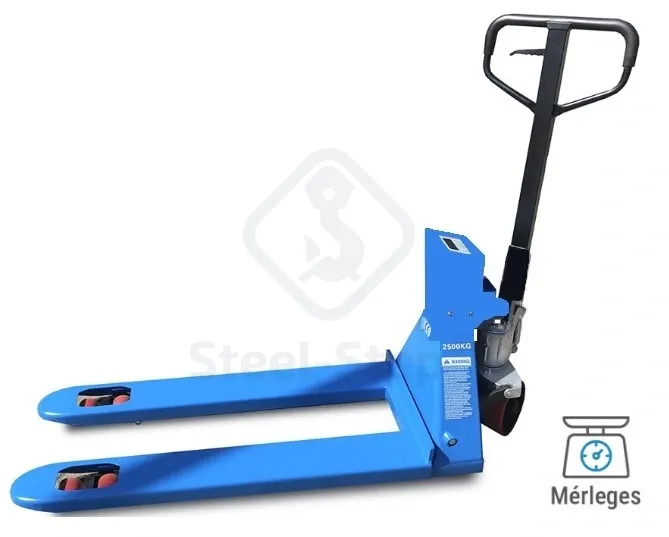 Felhasználás: szállítás, anyagmozgatás, raktározás területén. A kormányzott kerekek bevonata: alu gumival vagy poliuretán. A kerekek elfordulási szöge: 230o. Osztásérték: 500 g. Emelési magasság: 190 mm. Tulajdonságok: digitális kijelző, 4 db mérőcella az alvázba építve, tára funkció, beépített memória, darabszámláló funkció, túlterhelés riasztás. Alacsony feszültség jelzése. A kitámasztókerekek súrlódáscsökkentő anyagból készülnek, élettartamuk hosszú, karbantartást nem igényelnek. A vezérlőszelep karja három állású: süllyesztés / semleges / emelés. A szerkezet kialakítása biztosítja a szűk helyen történő mozgatást és a teher alá történő könnyű betolást (lekerekítések). Amennyiben a megfelelő termék kiválasztásával, műszaki alkalmasságával kapcsolatban kérdése van, forduljon szakembereinkhez! Telefon: 06 (52) 316-319