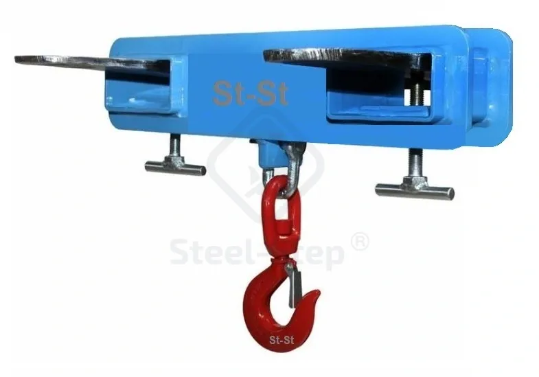 A forgó horoggal ellátott targoncavilla adapter ideális megoldás targonca segítségével történő biztonságos emeléshez és pontos terhek pozicionálásához, különösen nem szabványos alakú vagy forgatást igénylő tárgyak esetén. A tartós szerkezeti acélból, korrózióvédelemmel készült adapter hosszú élettartamot és megbízható működést biztosít. Egyszerűen csatlakoztatható a targonca villáihoz. A seklivel és csapágyazott, 360°-ban forgatható horoggal felszerelt kivitel biztonságos használatot és pontos kezelhetőséget garantál. Az adapter gyorsan, szerszám nélkül, egyetlen kezelő által felszerelhető vagy cserélhető. Megfelel a 2006/42/EK Gépek Irányelvnek, valamint az EN 13155 szabványnak. Amennyiben a megfelelő termék kiválasztásával, műszaki alkalmasságával kapcsolatban kérdése van, forduljon szakembereinkhez! Telefon: 06 (52) 316-319