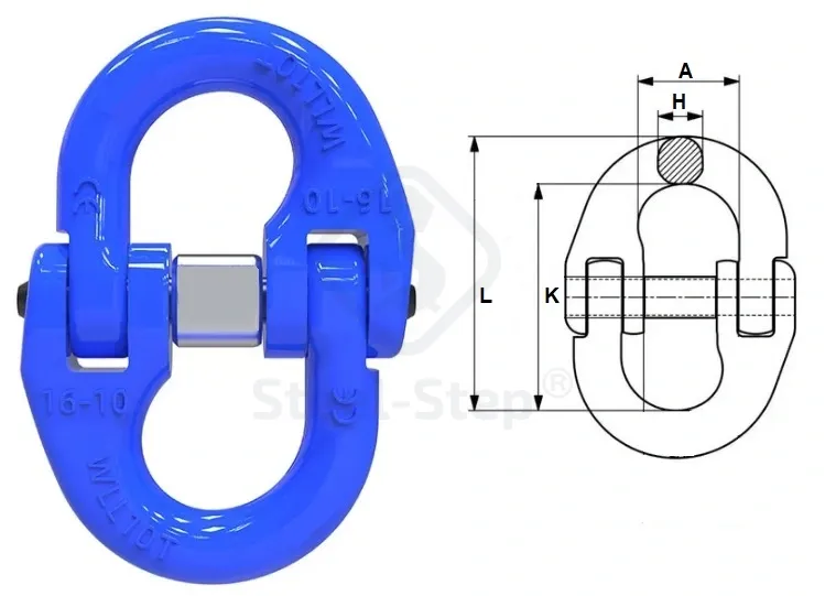 Különleges, nagy intenzitású és nagy szívósságú ötvözött acélból kovácsolják, majd hőkezelik. Minden munkadarabnak át kell mennie a teszten, a terhelési határérték 2,5-szeresével. Szigorú mintavételezést, törésvizsgálatot, valamint 100%-os mágneses repedésvizsgálatot kell végezni minden darabnál. Felületkezelés: műanyag bevonat festett; Színkód: kék RAL5015; Csak G100 teherlánc és UHMPE függesztékhez használható. Jelölés: szabvány szerint, CE-jelöléssel van elátva, és teherbírásal. Biztonsági tényező: 4:1, A teljesítmény 25%-kal nő a G80 termékekhez képest; Amennyiben a megfelelő termék kiválasztásával, műszaki alkalmasságával kapcsolatban kérdése van, forduljon szakembereinkhez. Telefon: 06 (52) 316-319