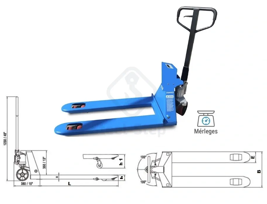Felhasználás: szállítás, anyagmozgatás, raktározás területén. A kormányzott kerekek bevonata: alu gumival vagy poliuretán. A kerekek elfordulási szöge: 230o. Osztásérték: 500 g. Emelési magasság: 190 mm. Tulajdonságok: digitális kijelző, 4 db mérőcella az alvázba építve, tára funkció, beépített memória, darabszámláló funkció, túlterhelés riasztás. Alacsony feszültség jelzése. A kitámasztókerekek súrlódáscsökkentő anyagból készülnek, élettartamuk hosszú, karbantartást nem igényelnek. A vezérlőszelep karja három állású: süllyesztés / semleges / emelés. A szerkezet kialakítása biztosítja a szűk helyen történő mozgatást és a teher alá történő könnyű betolást (lekerekítések). Amennyiben a megfelelő termék kiválasztásával, műszaki alkalmasságával kapcsolatban kérdése van, forduljon szakembereinkhez! Telefon: 06 (52) 316-319