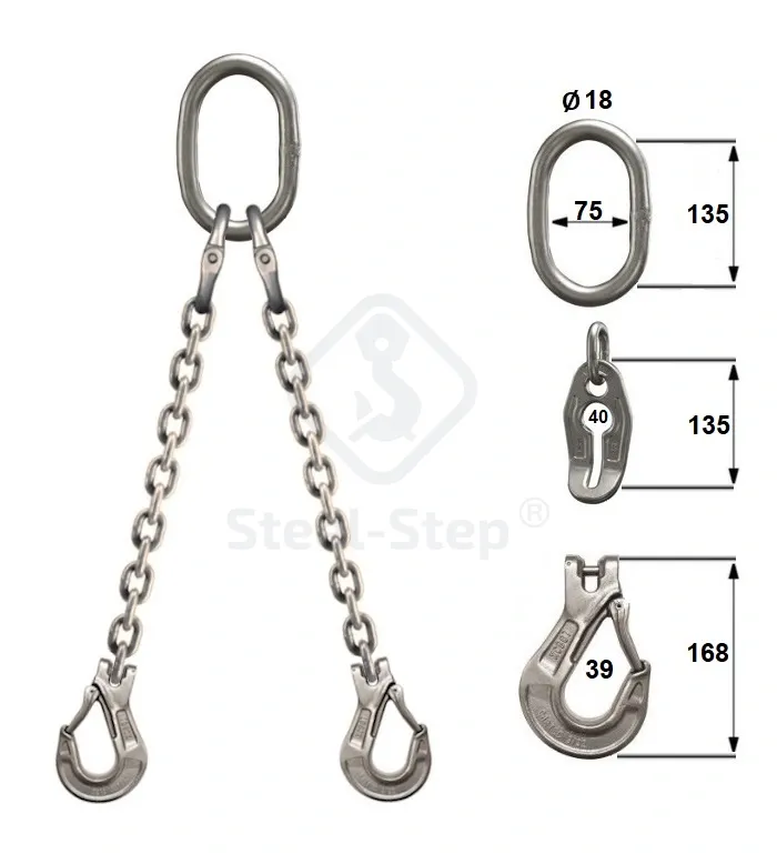 G60 Dispozitiv din lanț inox D tip 2 braț - G60 Stainless steel sling 2-leg