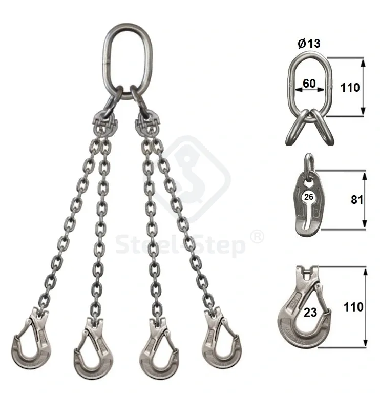 G60 Dispozitiv din lanț inox H tip 4 braț - G60 Stainless steel sling type H 4 leg