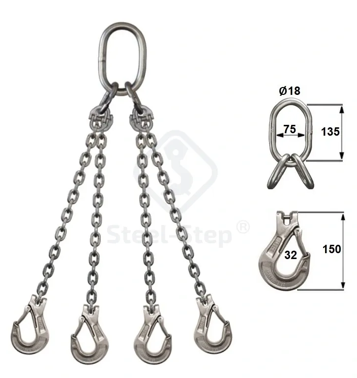 G60 Dispozitiv din lanț inox H tip 4 braț - G60 Stainless steel sling type H 4 leg