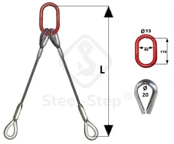 Dispozitiv de ridicare din cablu cu 2 ramuri G-PK tip - Wire rope sling, 2 legs (with thimble eyes)