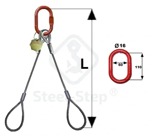 Dispozitiv de ridicare din cablu cu 2 ramuri fara rodanta la capete G-A tip -  Wire rope sling, two legs (with eye end)