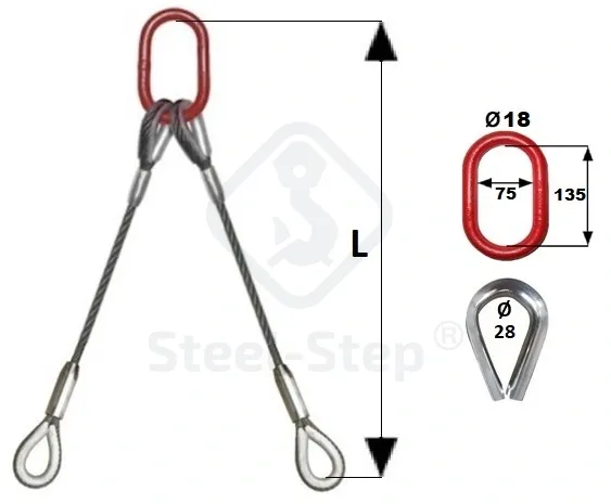 Dispozitiv de ridicare din cablu cu 2 ramuri G-PK tip - Wire rope sling, 2 legs (with thimble eyes)