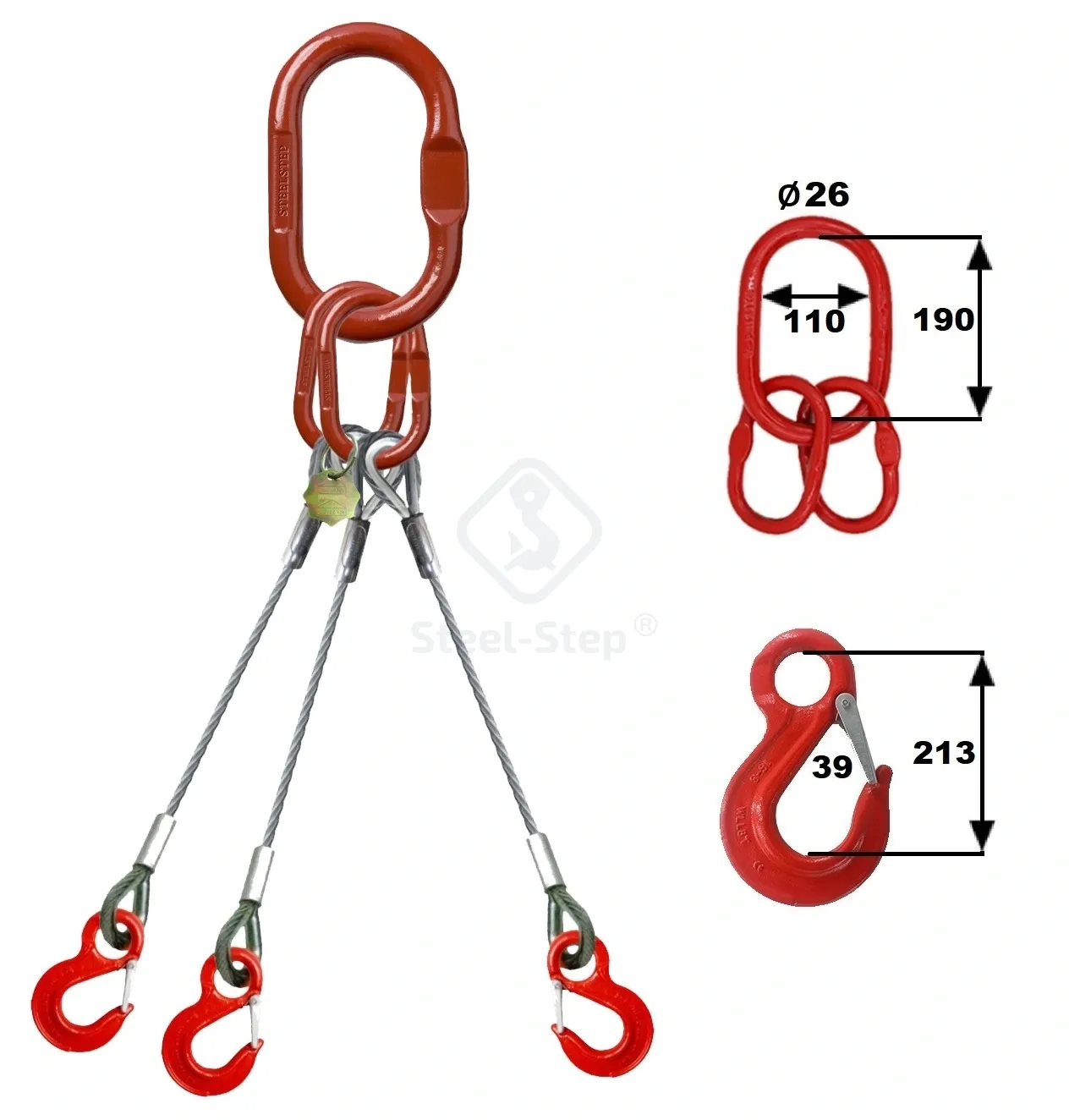Dispozitiv de ridicare din cablu cu 3 ramuri - Wire rope sling, three legs