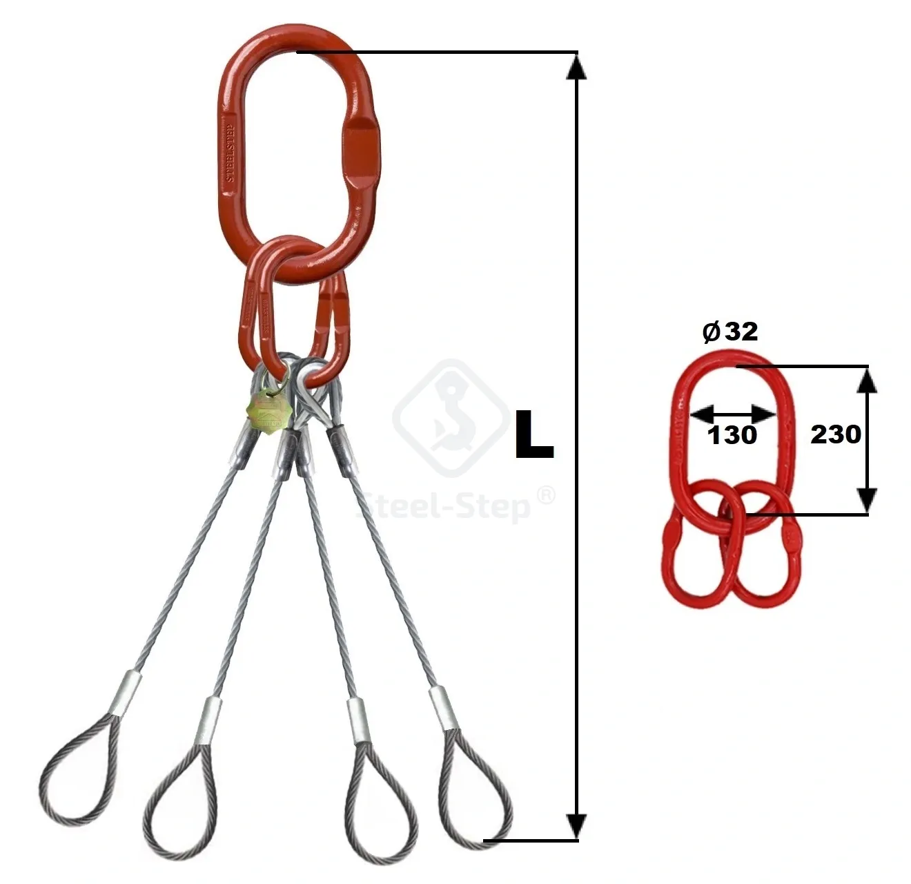 Dispozitiv de ridicare din cablu cu 4 ramuri (H-A tip) - Four leg wire rope sling, H-A type (with eye end)
