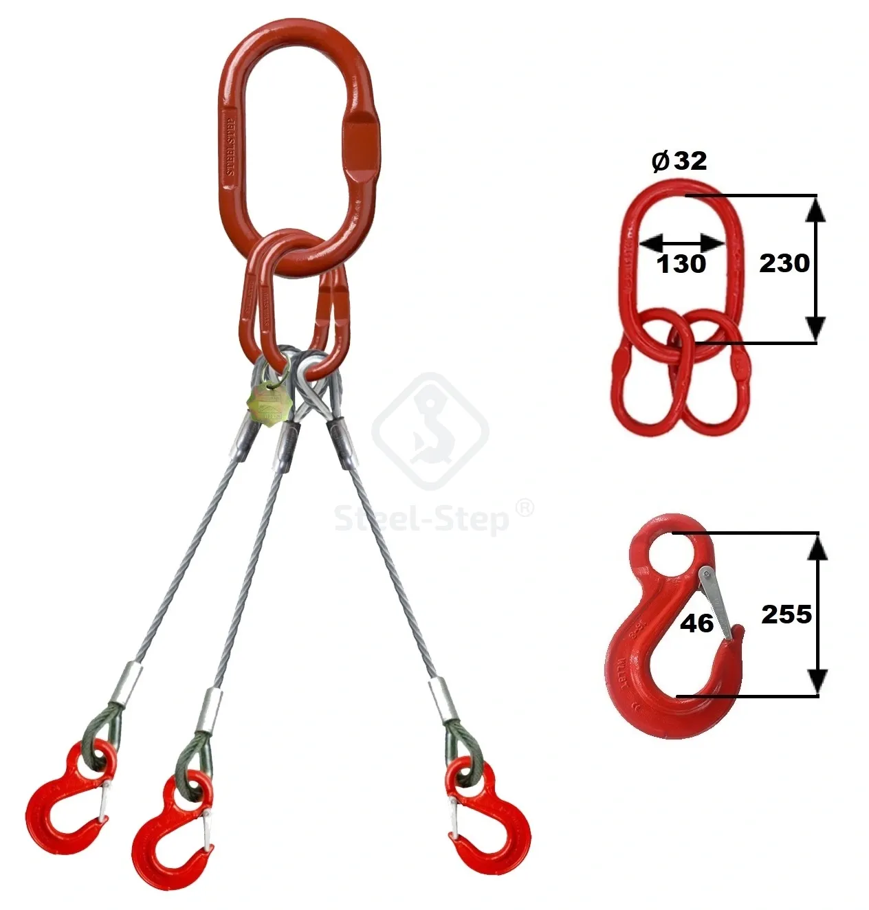 Dispozitiv de ridicare din cablu cu 3 ramuri - Wire rope sling, three legs