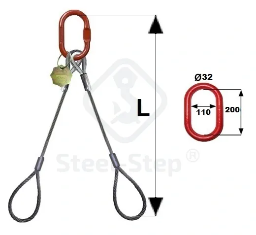 Dispozitiv de ridicare din cablu cu 2 ramuri fara rodanta la capete G-A tip -  Wire rope sling, two legs (with eye end)