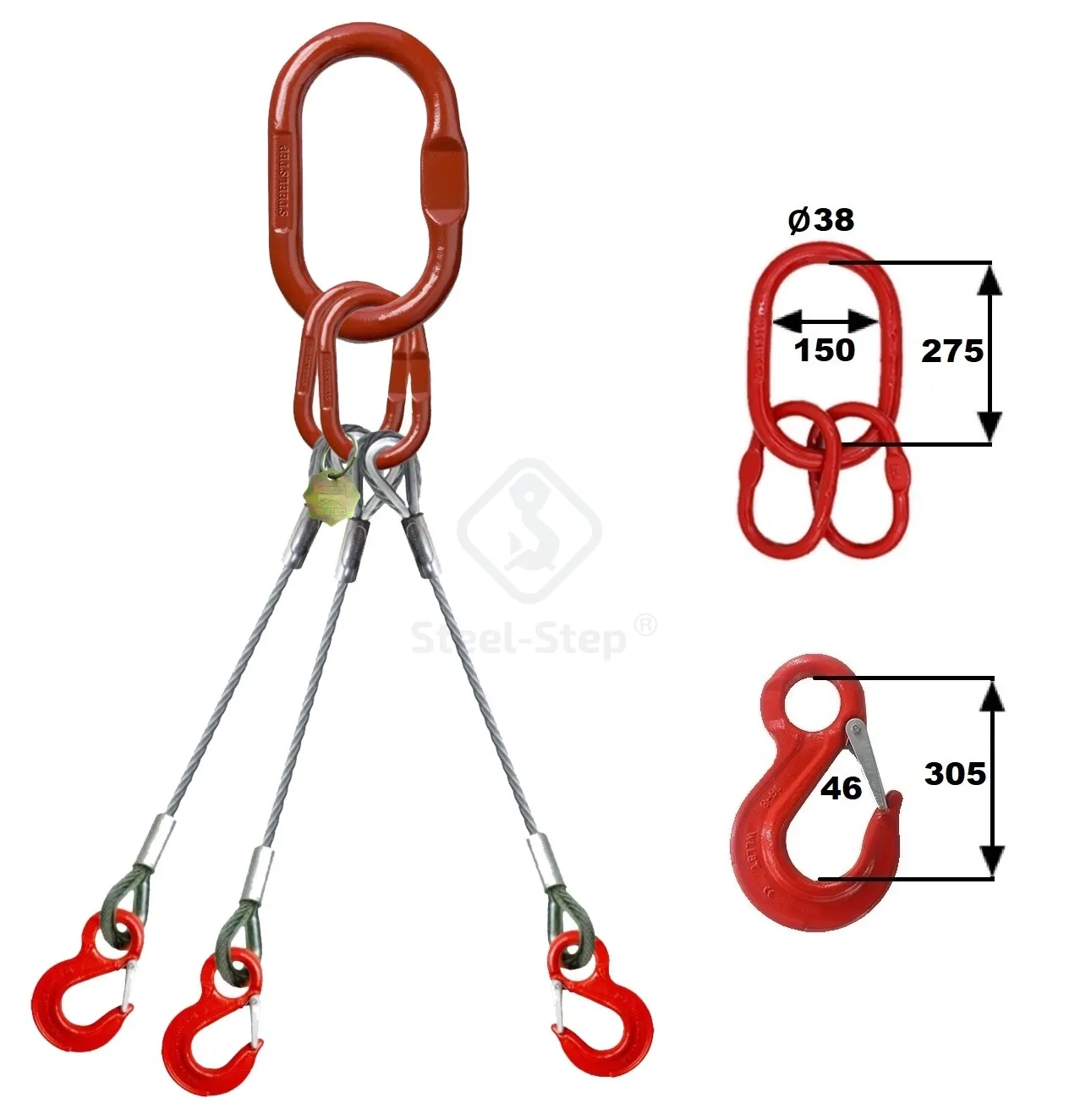 Dispozitiv de ridicare din cablu cu 3 ramuri - Wire rope sling, three legs