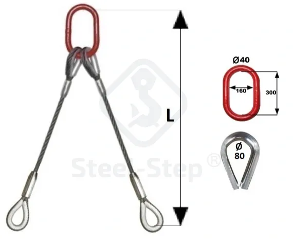 Dispozitiv de ridicare din cablu cu 2 ramuri G-PK tip - Wire rope sling, 2 legs (with thimble eyes)